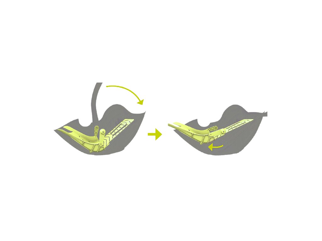 - Optimalizovaná ochrana proti bočnému nárazu vďaka bočným chráničom a tiež flexibilná štruktúra materiálu v oblasti hlavičky.