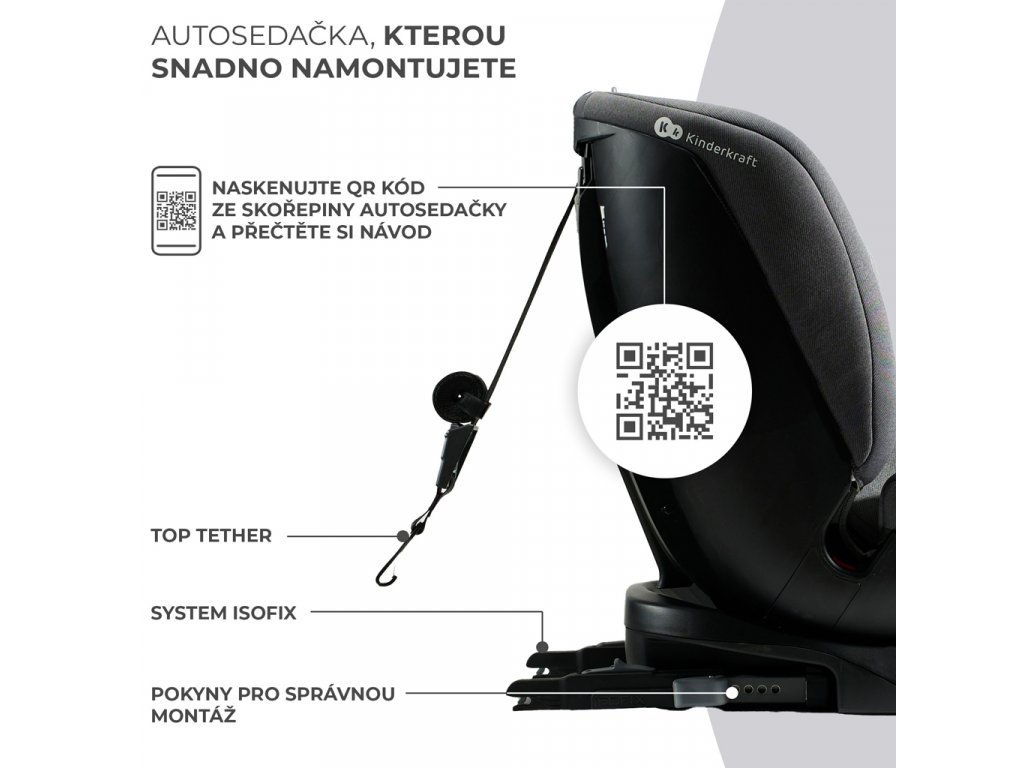 V záujme ochrany životného prostredia a pohodlia rodičov sme sa rozhodli prejsť na elektronické návody na použitie. Teraz máte tieto pokyny vždy po ruke prostredníctvom QR kódov na škrupine autosedačky. Vďaka tomu sa autosedačka ľahko montuje do auta pomocou systémov ISOFIX a TOP TETHER (na úchytoch sú indikátory, ktoré vám pomôžu pri správnej inštalácii). Namontovanie autosedačky do auta a kontrola, či indikátory ukazujú zelenú farbu, trvá len chvíľu.