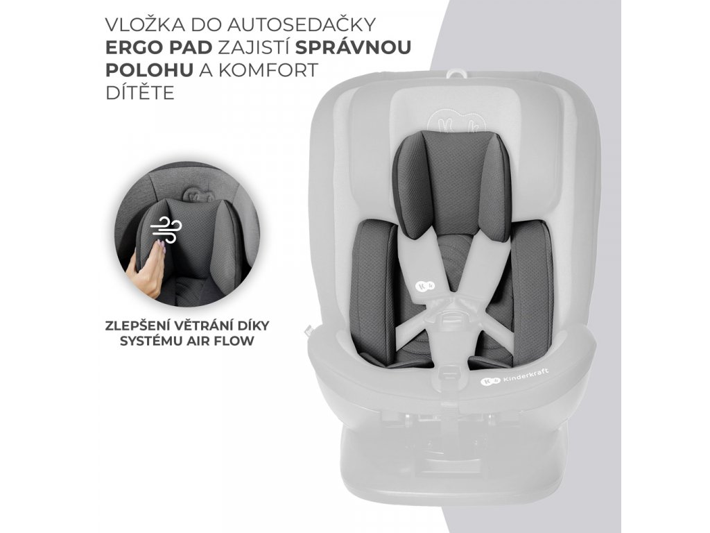 XPEDITION 2 i-Size je vybavená ergonomickou, vysokokvalitnou vložkou ERGO PAD so systémom AIR FLOW. Nielenže zaručuje anatomickú polohu tela dieťaťa počas jazdy, stará sa o jeho pohodlie a správny vývoj chrbtice, ale zabezpečuje aj prúdenie vzduchu pri jazde v horúcich dňoch. Vložka je určená pre deti s výškou do 60 cm a je zároveň prídavnou vrstvou, ktorá rozptyľuje energiu nárazu skôr, ako sa dostane k dieťaťu pri náraze.
