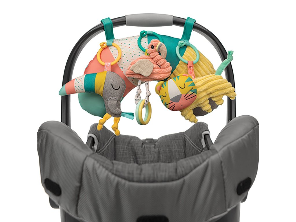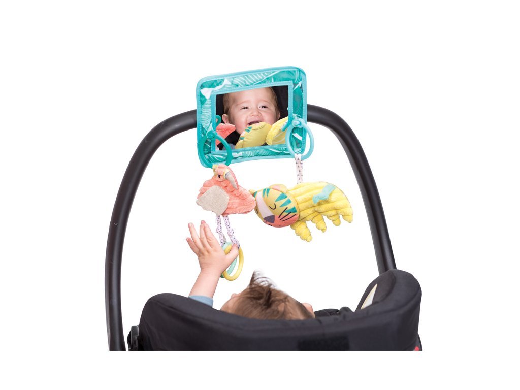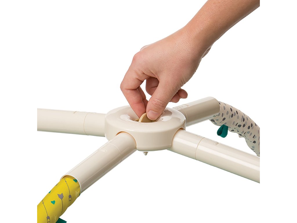 Hracia deka s krásnymi ilustráciami a hračkami v podobe zvieratiek zo zoo ponúka množstvo aktivít, ktoré stimulujú rozvoj jednotlivých zmyslov dieťaťa. Špeciálny vankúšik a bezpečné zrkadlo podnecujú dieťa k hre na brušku. Závesné hračky je možné pripevniť k ramenám hrazdy, aby ich dieťa mohlo skúmať pri ležaní na chrbte, alebo sa môžu pripevniť k vankúšiku na hranie v polohe na brušku. Hudobný box v podobe plyšovej opičky hrá po natiahnutí melódiu a môžete ho používať aj samostatne napr. na autosedačke alebo v kočíku. Deku s hrazdou vďaka stredovému dielu Twist & Fold ľahko zložíte do kompaktného tvaru na prenášanie. Môžete ju tak využívať na zabavenie vášho dieťaťa nielen doma, ale aj na cestách. Vhodné pre deti od narodenia.