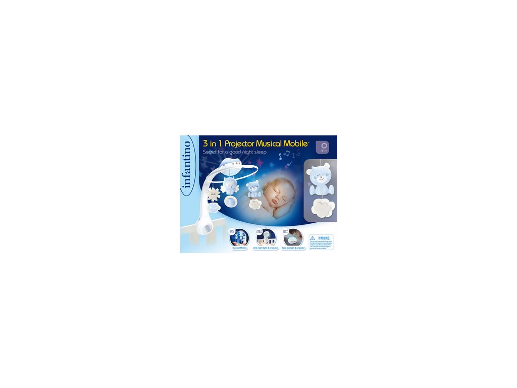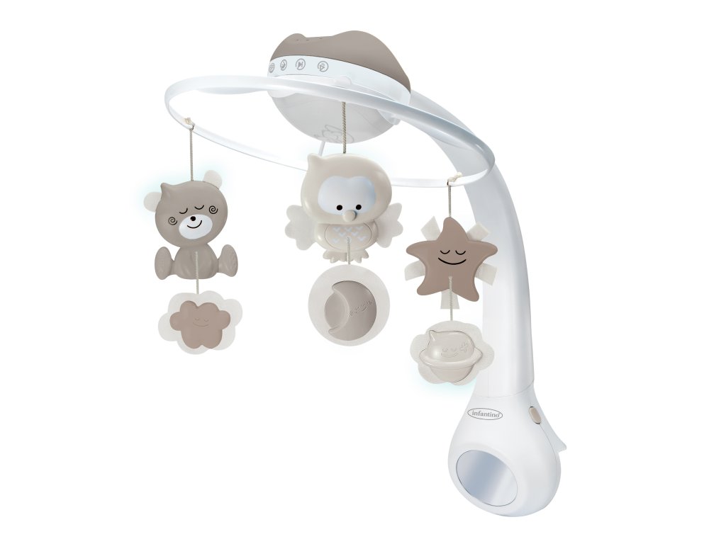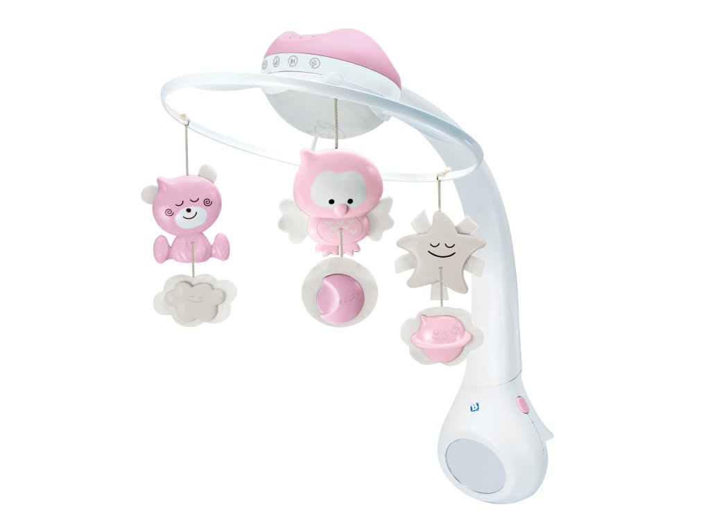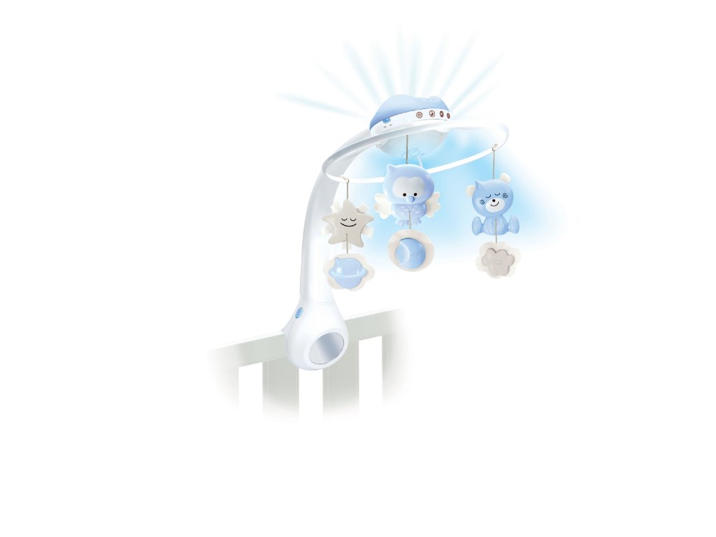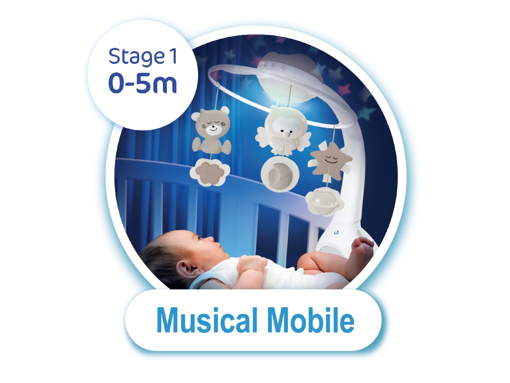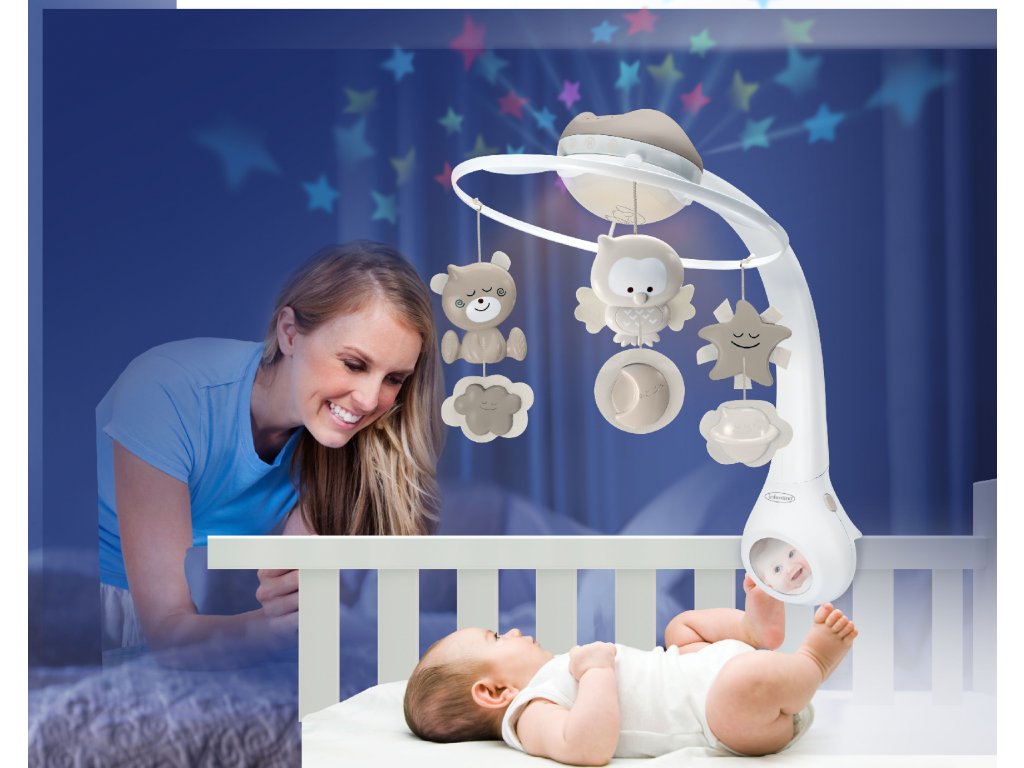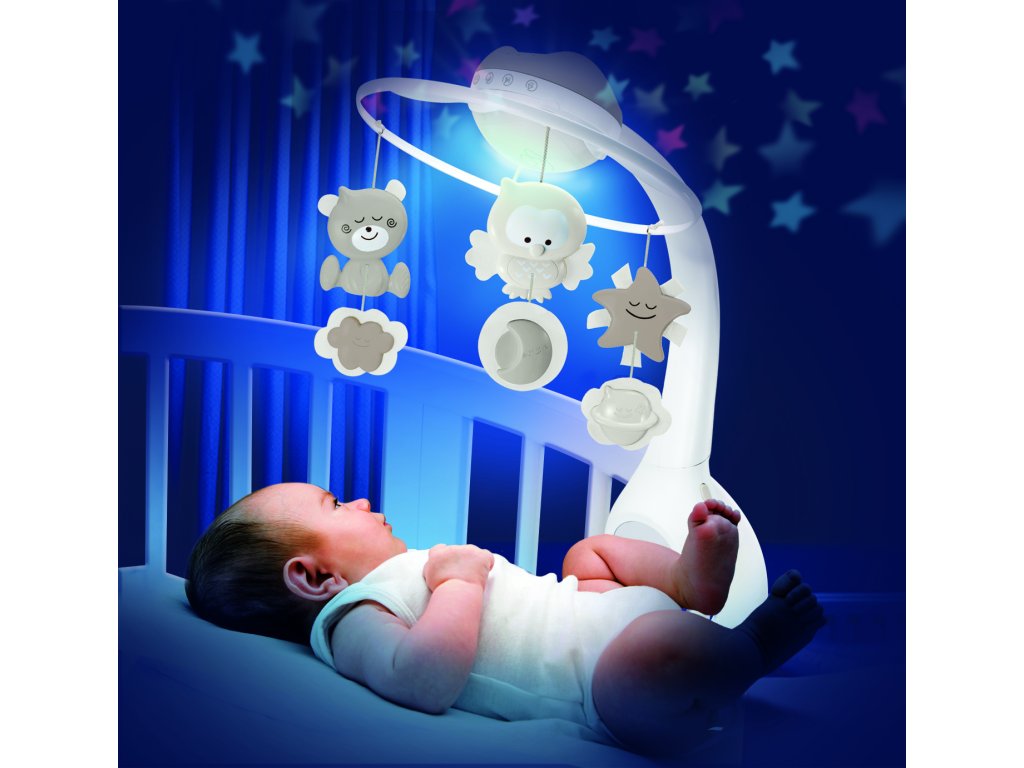 Hudobný kolotoč pre ľahké zaspávanie aj zabavenie dieťaťa ponúka 3 možnosti použitia: hudobný kolotoč pre deti od narodenia do 5 mesiacov nočné svetielko a projektor do postieľky pre deti od 6 do 18 mesiacov nočné svetielko a projektor na nočný stolík pre deti od 18 mesiacov Svetelný projektor premieta na stenu či strop hviezdičky a jemne tak osvieti detskú izbu. Spolu s upokojujúcou melódiou pomôže vášmu dieťaťu v pokoji zaspávať. Vhodné pre deti od narodenia.