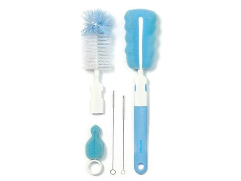 Súprava tiež obsahuje špongiu na čistenie cumlíkov. Kefa má závesný otvor na sušenie pred ďalším použitím. Kefy siahajú na ťažko prístupné miesta a pohodlné držadlá poskytujú stabilnú priľnavosť. Sú vyrobené z odolných a bezpečných materiálov, ktoré neobsahujú bisfenol A.