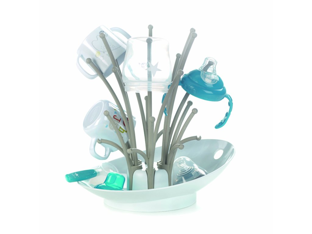 Organizér na vysušenie kojeneckých fliaš/cumlíkov. Vlastnosti: - Ideálny pomocník, keď chcete mať fľaše a cumlíky čisté a pripravené na použitie - Tvar stromu umožňuje vysušiť rôzne nádobky, fľašky a hrnčeky, ktoré patria vašej ratolesti - Konkávny podstavec zaručuje uhol, vďaka ktorému všetka voda z nádob vytečie a tie zostanú dokonale suché - Jednoduché je tiež jeho zloženie - Jednotlivé časti organizéra možno jednoducho odňať a vyčistiť
