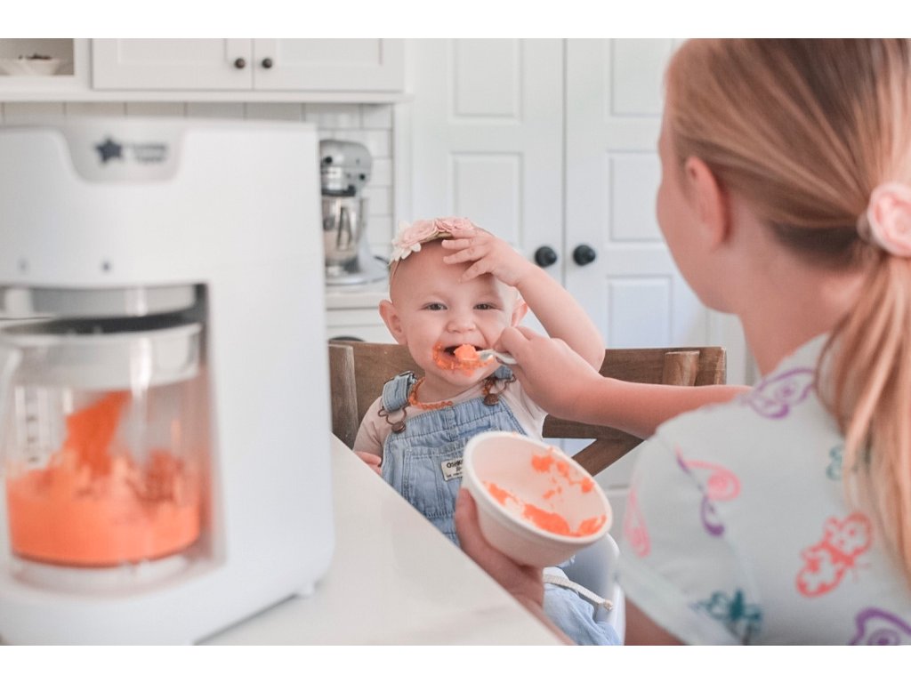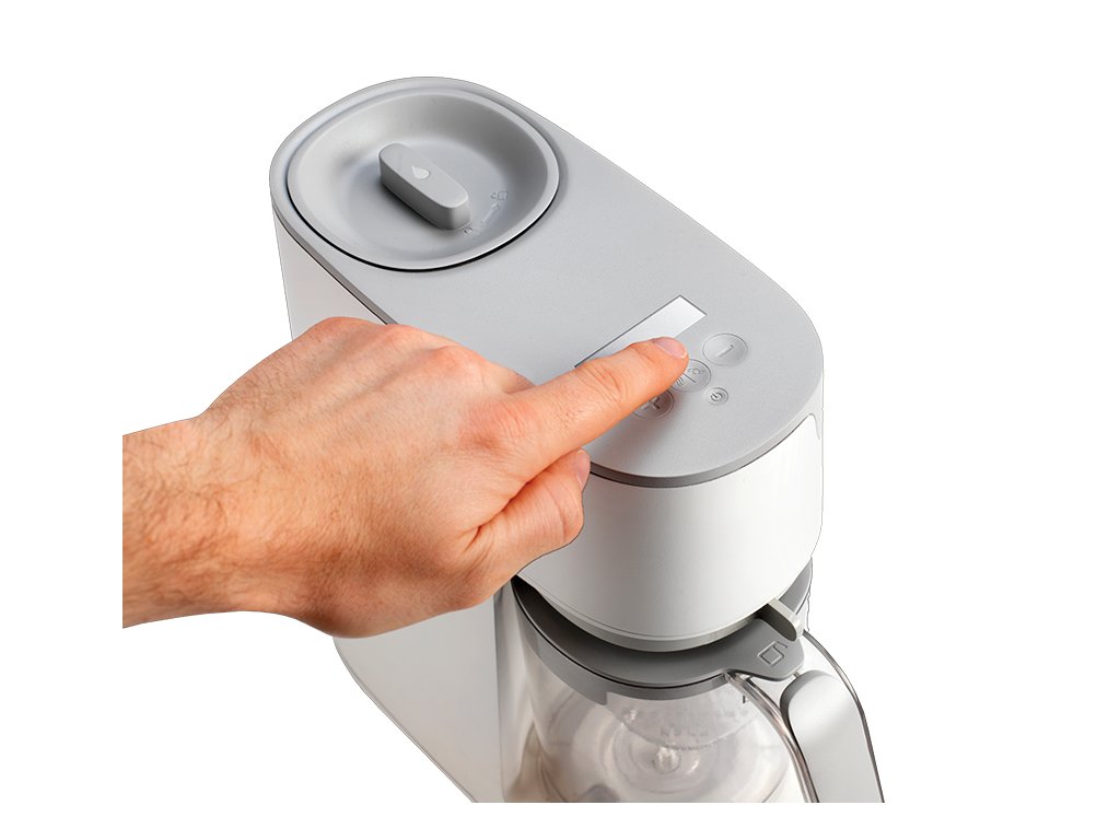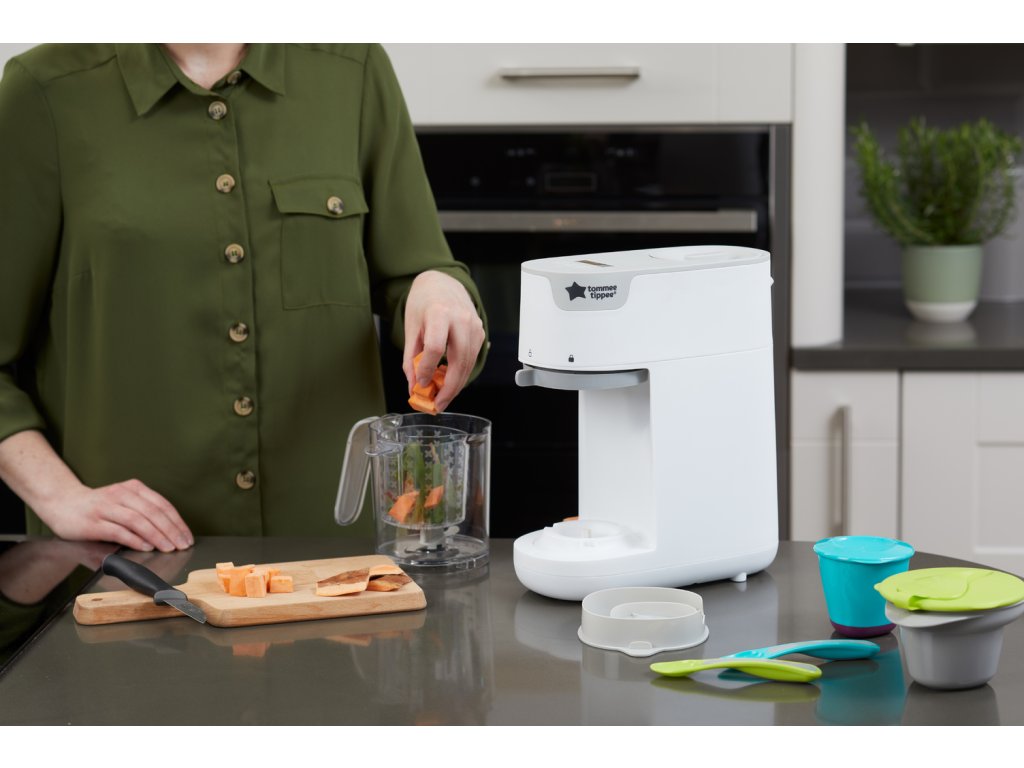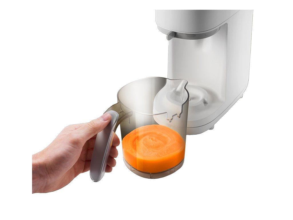 Parný hrniec a mixér v jednom umožňuje zdravo uvariť pokrm v pare a následne ho v rovnakej nádobe rozmixovať. Príprava jedla je veľmi jednoduchá - iba do zásobníka nalejete vodu, do košíka v priehľadnej nádobe vložíte na kúsky nakrájané suroviny (zeleninu, ovocie, mäso atď.) a na digitálnom displeji nastavíte dobu varenia. Po skončení nastavenej doby varenia sa prístroj sám vypne a ozve sa zvukový signál. Prístroj umožňuje nasledujúce tri varianty nastavenia: doba varenia + doba mixovania - po skončení varenia prístroj hotové suroviny automaticky rozmixuje doba varenia - po skončení varenia môžete hotové suroviny použiť nerozmixované alebo pokračovať nastavením doby mixovania doba mixovania - ak chcete suroviny iba rozmixovať bez predchádzajúceho cyklu varenia Funkcia pamäte posledného nastavenia umožňuje zopakovanie naprogramovaného cyklu pri použití prístroja do 30 minút od posledného použitia. Podľa veku dieťaťa môžete suroviny nastavením dĺžky mixovanie rozmixovať na jemnú hladkú kašu alebo na hrubšiu štruktúru s kúskami. Keď sa dieťa naučí dobre hrýzť, dá sa prístroj ďalej používať pre zdravé varenie v pare aj bez mixovania. Neobsahuje BPA.