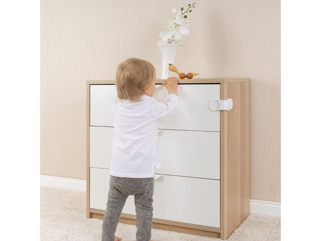 S externým zámkom na dvere a zásuvky skriniek udržíte nebezpečné predmety mimo dosahu vášho dieťaťa a ochránite ho tak pred možným zranením.