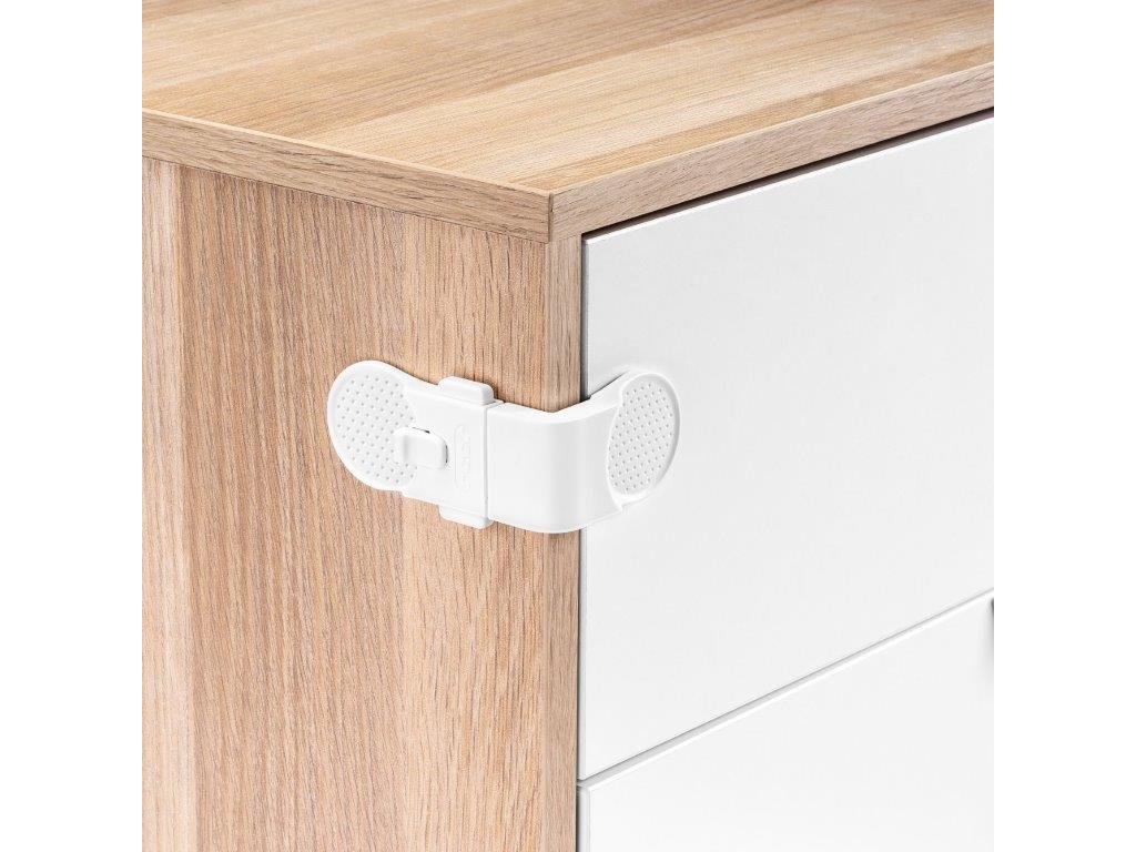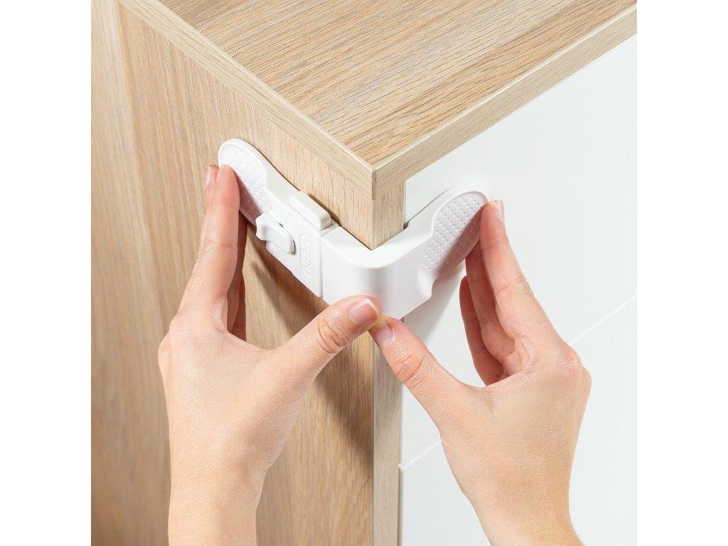 Bezpečnostný zámok je možné flexibilne použiť na akomkoľvek nábytku, ktorý umožňuje rohové pripevnenie (nie je vhodné pre zapustené zásuvky).