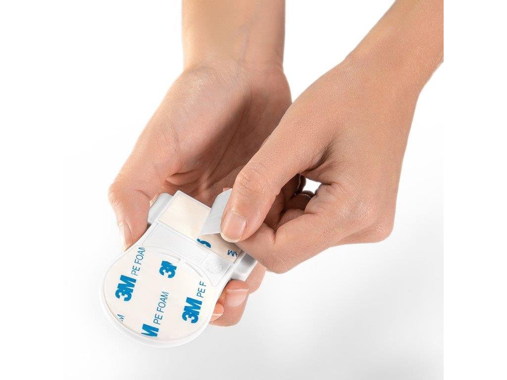 Vďaka predpripraveným lepiacim podložkám je inštalácia zámku veľmi jednoduchá a rýchla. Akonáhle je dieťa dostatočne veľké, je možné zámok zložiť bez zanechania akýchkoľvek stôp.