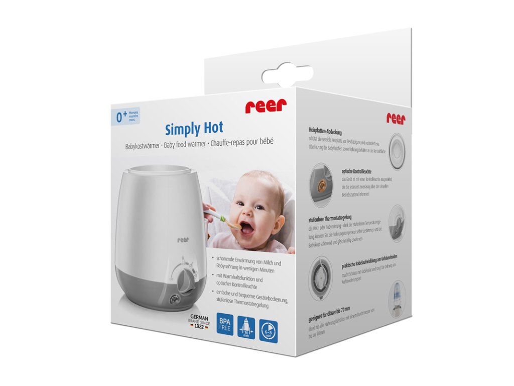 Pre detské výživy, štandardné a širokým fľaše. Šetrne a dokonole ohreje detskú výživu vo vodnom kúpeli. Ohrieva mlieko v 6-8 minútach, dojčenskú výživu za 8 - 10 minút. Termostatom ovládané vypínanie.Vlastnosti: