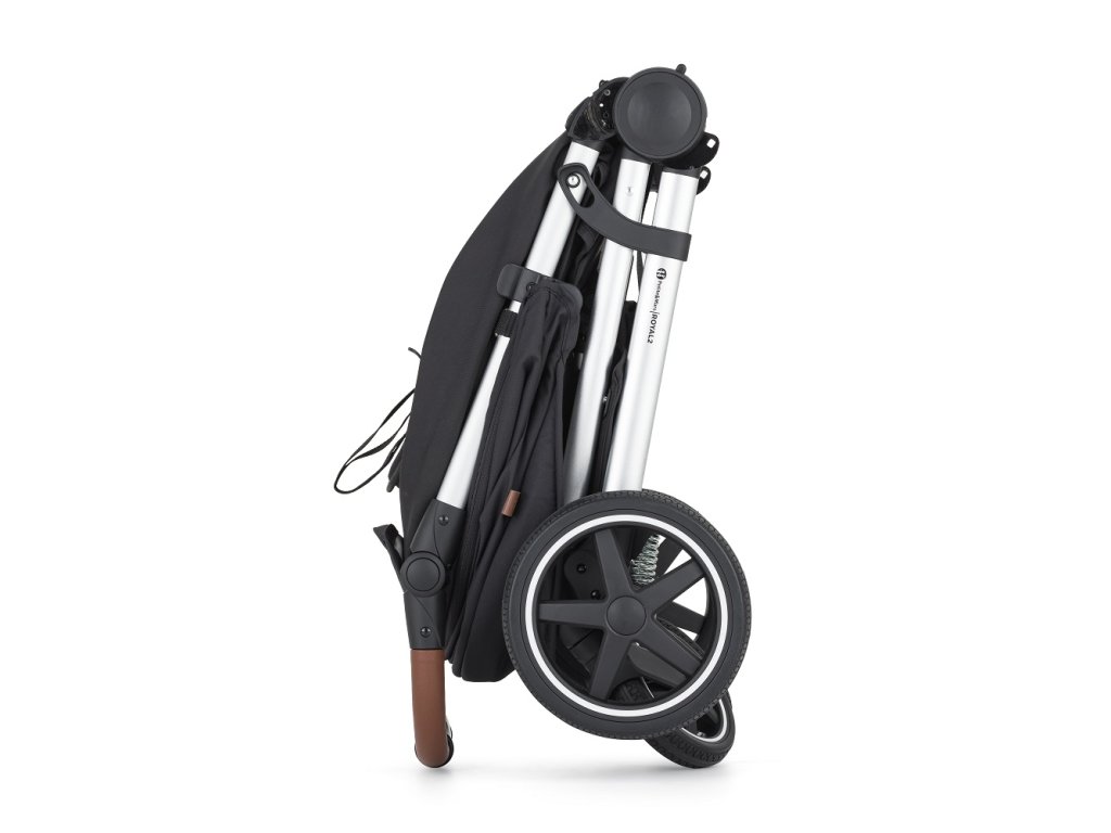 - Konštrukciu kočíka v striebornej farbe s madlom a rukoväťou v hnedej eko-koži