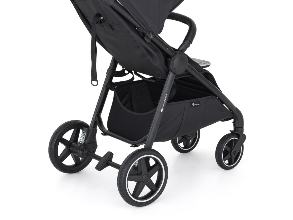 - kvalitný úchyt kolies, ktorý zabezpečuje stabilitu kočíka počas jazdy