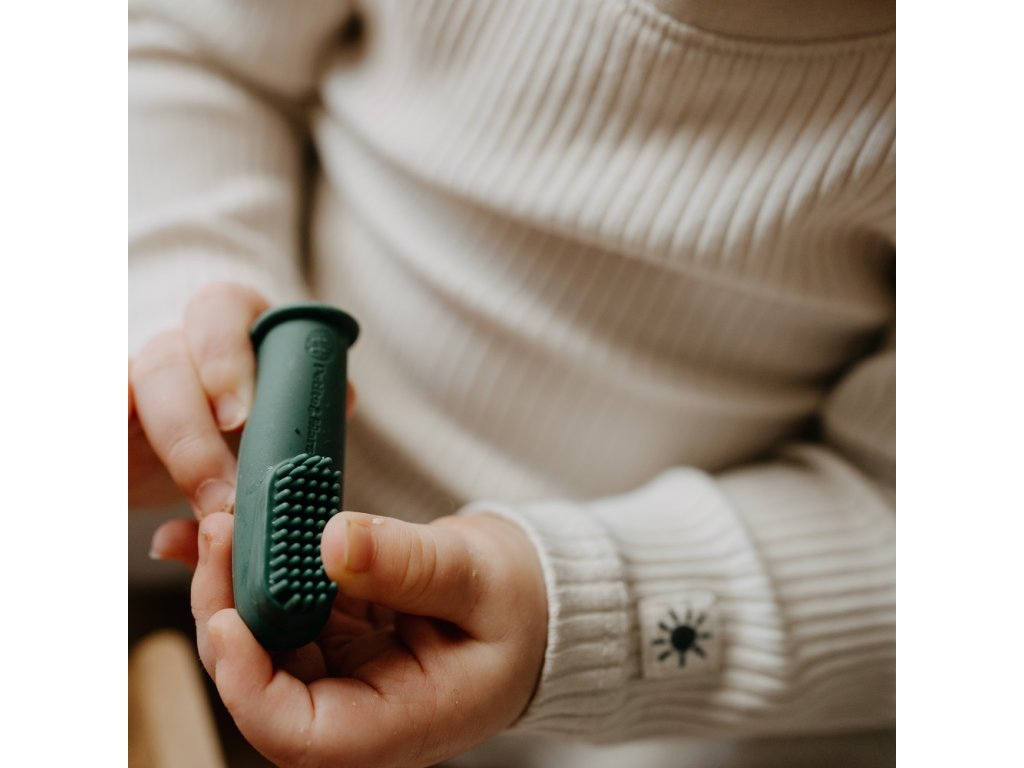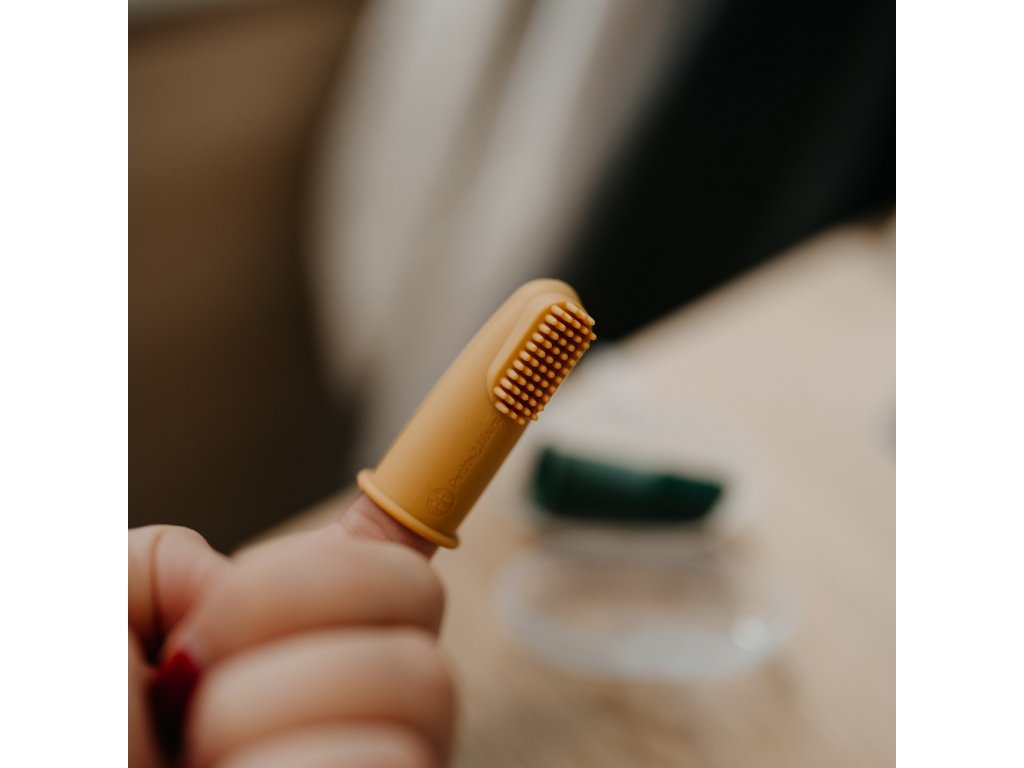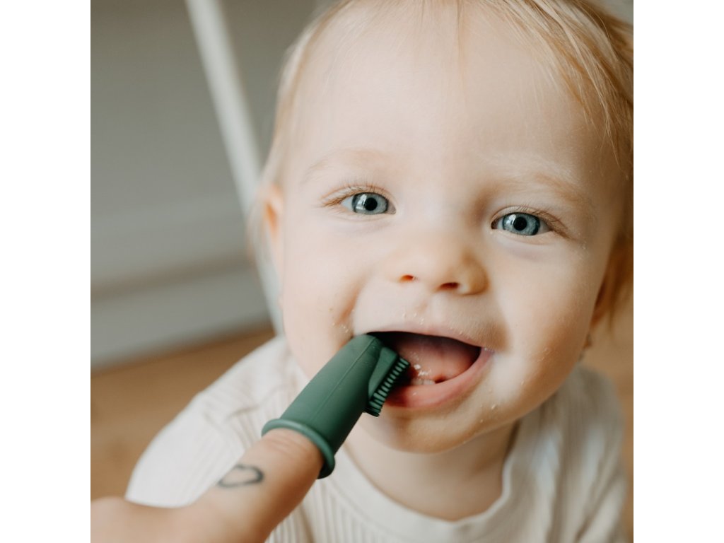 Zubná kefka v podobe krytky umiestnenej na prste rodiča je vyrobená z potravinárskeho silikónu bez BPA. Zubnú kefku stačí nasadiť na ukazovák a začať jemnú masáž ďasien a zubov vášho dieťaťa. Každodenný zdravý návyk sa tak zároveň stane príjemnou zábavou. Mäkký a pružný silikón je príjemný na dotyk a neubližuje citlivým ústam dieťaťa a pravidelné masírovanie upokojuje ďasná počas prerezávania zúbkov.