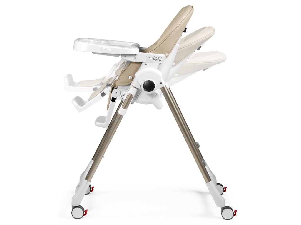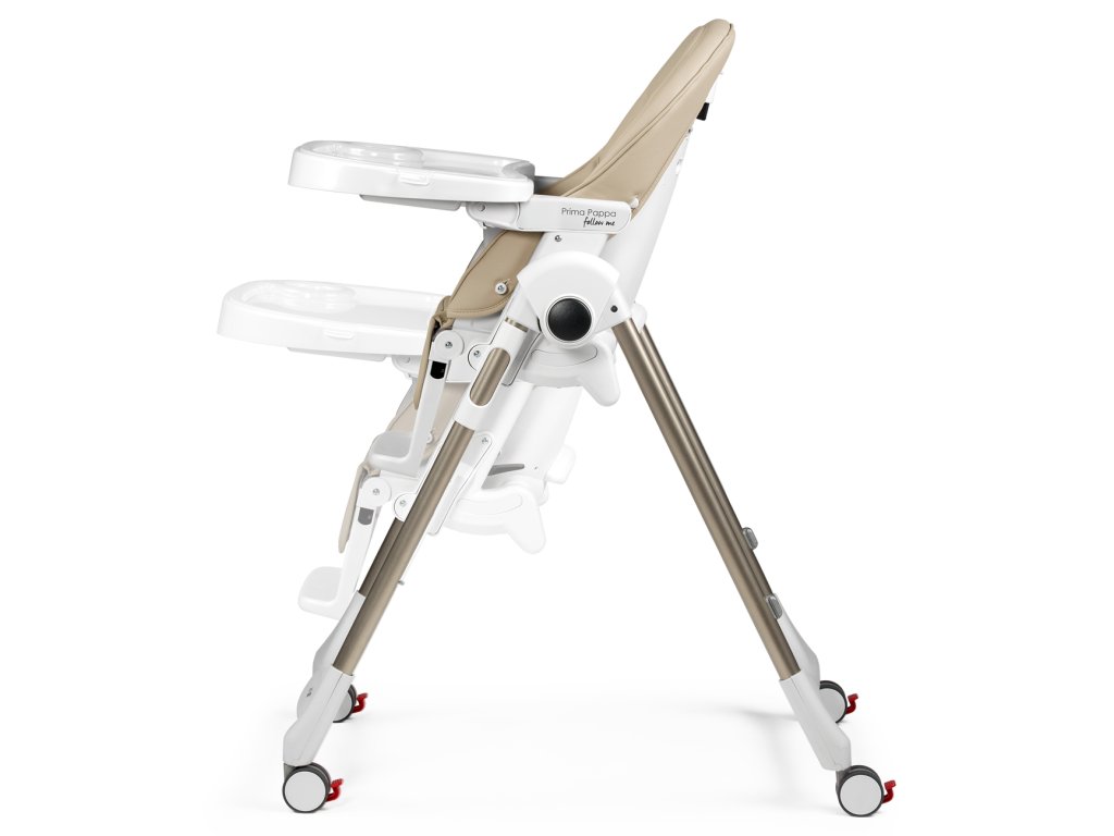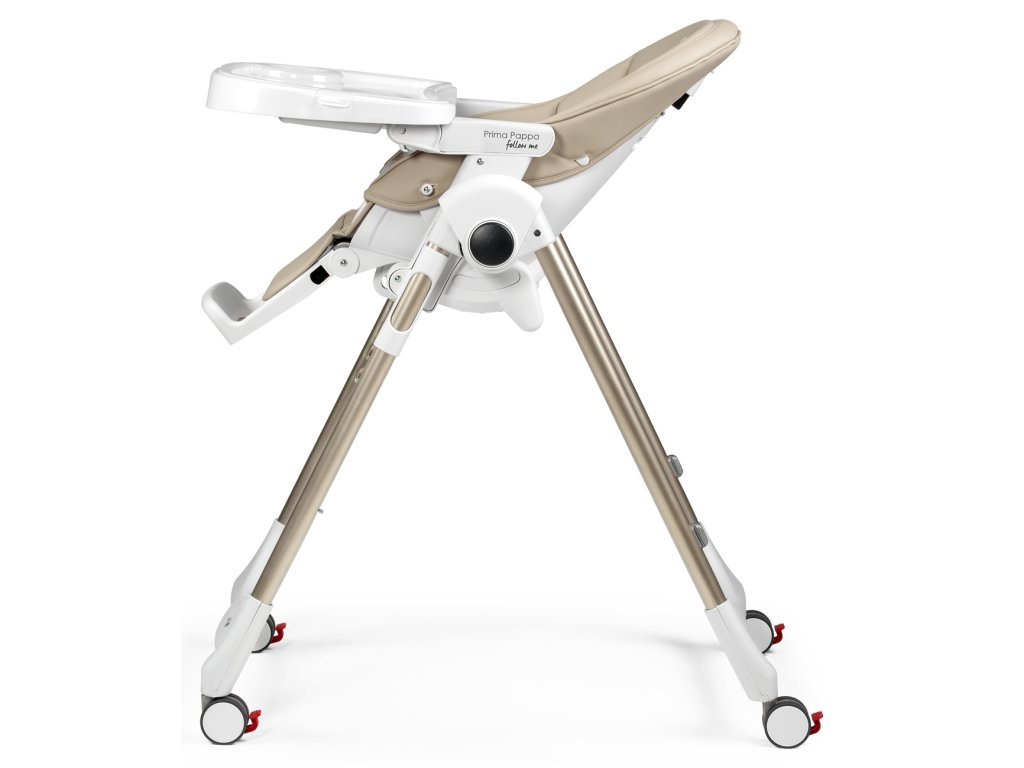 Ultralehká a multifunkční židlička Prima Pappa Follow Me roste s Vaším dítětem od narození až do 3 let: během prvních několika měsíců může být židlička Prima Pappa Follow Me používána jako pohodlné, relaxační naklápěcí lehátko. Od 6 měsíců věku dítěte poslouží jako jídelní židlička pro krmení a hraní a později, bez polohovacího tácku, k sezení u stolu společně s dospělými. Díky 4 kolečkům lze židličku snadno přemisťovat po vaší domácnosti. Celou židličku lze výškově nastavit do 7 pozic, její opěrka nohou je nastavitelná do 3 pozic a zádová opěrka do 5 pozic (více než 150 °). Dvojitý polohovatelný a odnímatelný tácek s držákem na láhev je vhodný i do myčky na nádobí a ve spodní části je opatřený bezpečnostní přepážkou, která zabraňuje vyklouznutí dítěte z židličky. Ve složeném stavu stojí samostatně a zabírá málo místa.