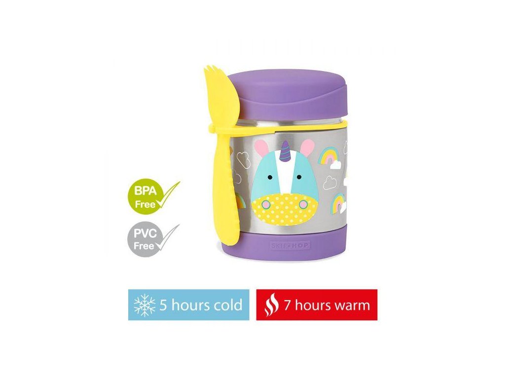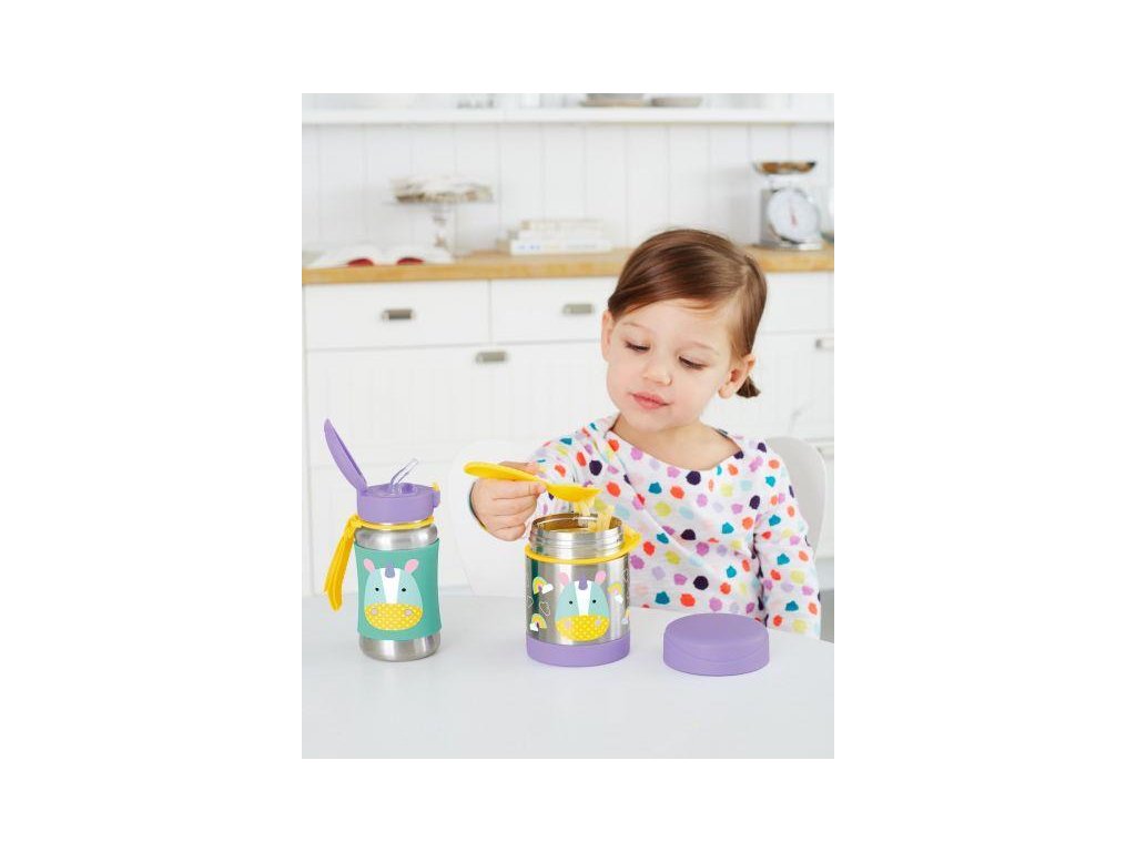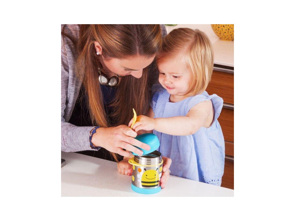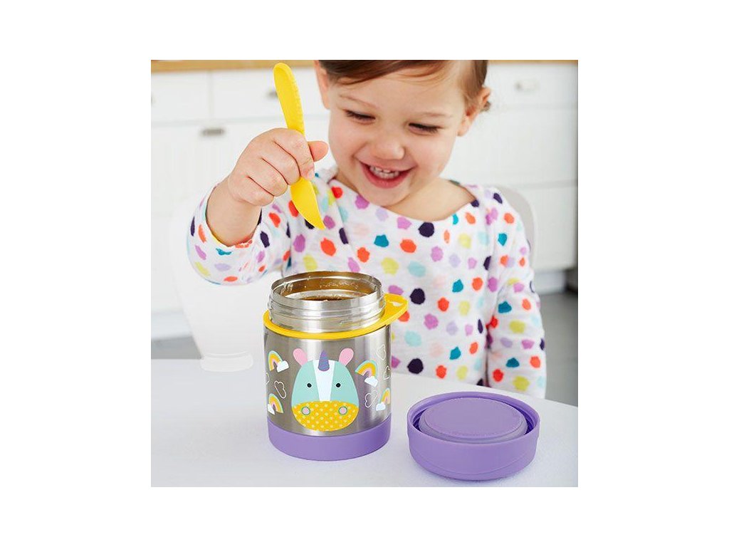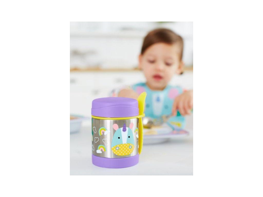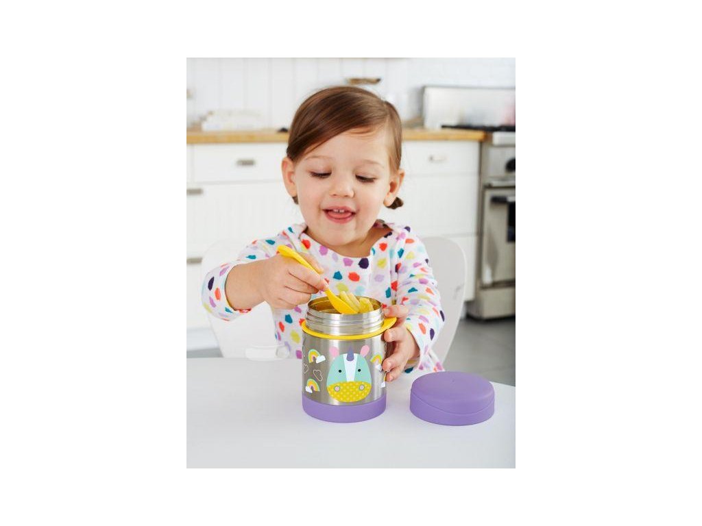 - unikátny dizajn, ktorý si dieťa obľúbi a bude viac motivované papať z obľúbenej termosky na jedlo značky Skip Hop