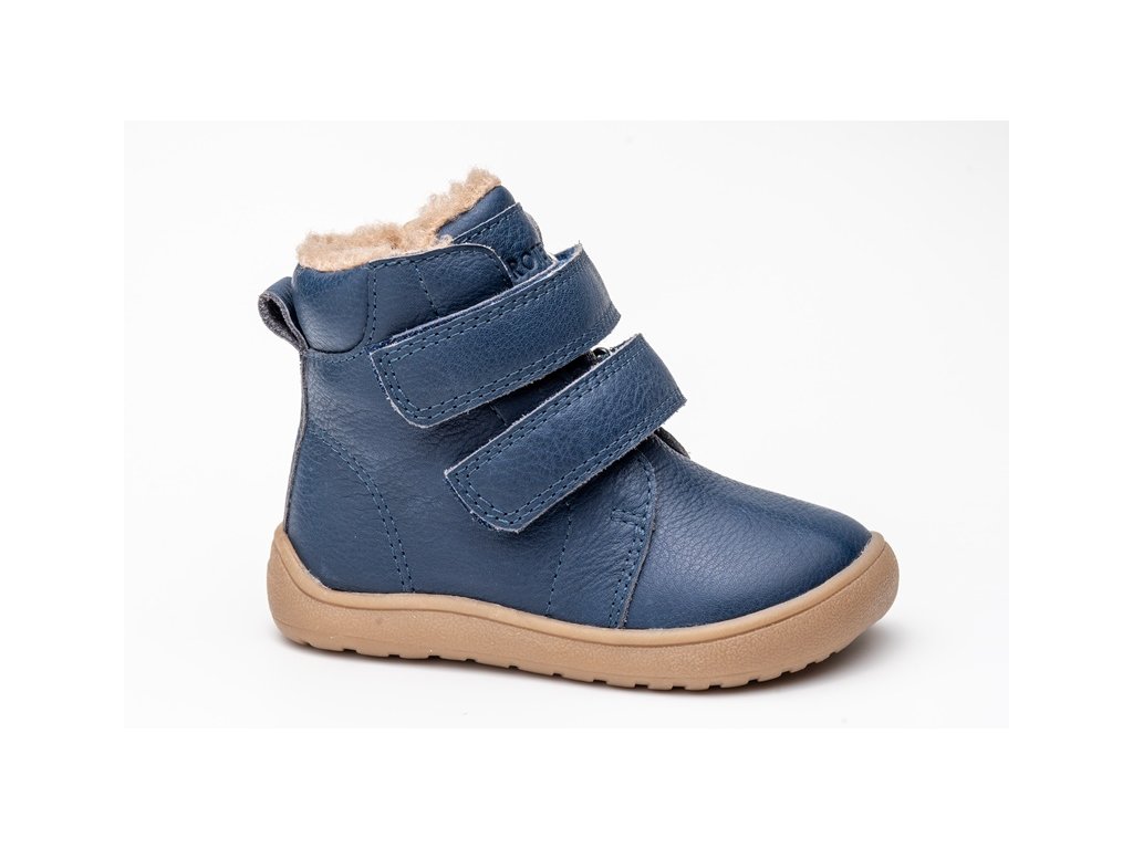 Pohodlné chlapčenské kožené barefoot zimné topánky s membránou DARYK Navy , vhodné na každodenné nosenie.